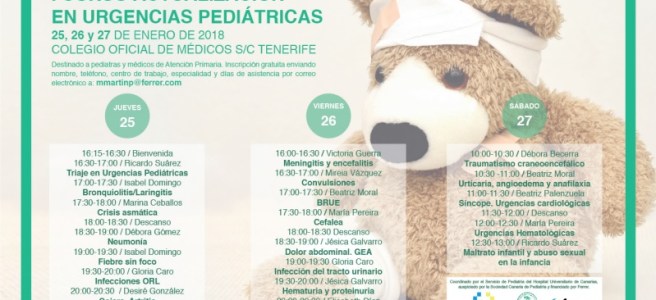 Elaborado por adjuntos y residentes del Hospital Universitario de Canarias (HUC), y expuestos por éstos últimos en charlas de media hora, abordan los principales capítulos de las urgencias en pediatría. Se trata del primer curso de actualización en estos temas que realizan para Pediatras y Médicos de Familia de Atención Primaria y Hospitalaria, aunque llevan realizándose a modo de talleres prácticos (denominados cariñosamente «escuelita de verano») desde hace más de 10 años, donde los residentes de mayor año de residencia impartían las clases a los que recién iniciaban la residencia. El objetivo: actualizar los temas con las últimas recomendaciones y generar una actuación común entre todos los que nos dedicamos a la atención de nuestros niños.